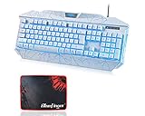 BlueFinger® USB Wired Cool Crack Blue Green Light Blue 3 Color Adjustable Illuminated Backlit Gaming Keyboard For Gaming White With BlueFinger® Customized Quality Mouse Pad